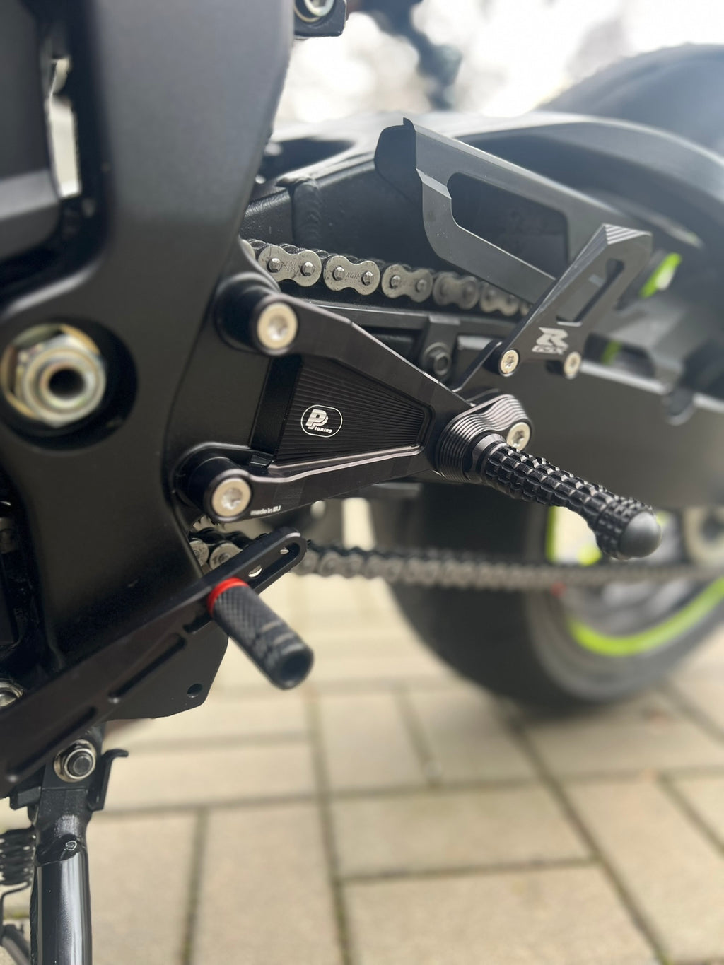 Compared to the OEM position, the rear sets can be adjusted: up to 42 mm backwards and 40 mm upwards or up to 22 mm forwards and 11 mm downwards. No other manufacturer in the world offers the option to adjust the position forward and down. If you are 195cm+/6.4 feet+ then you know what I'm talking about :-)